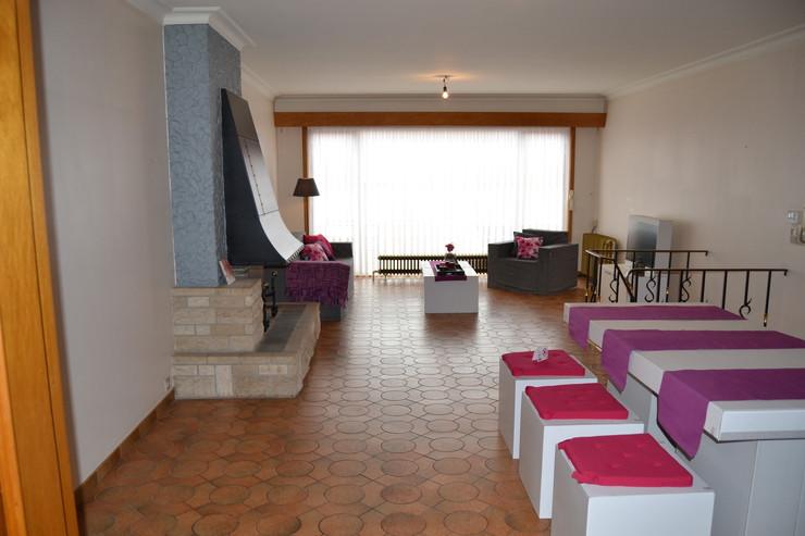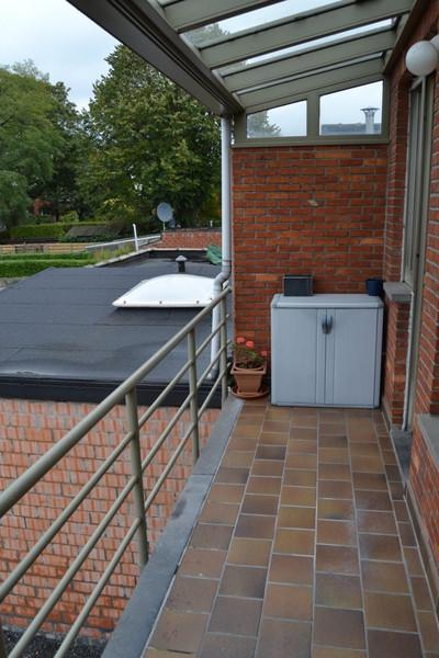 Het omvat een hal, een zeer grote lichte living, een keuken, een badkamer, een apart toilet, 3 grote bergruimtes met daglicht (eventueel te gebruiken als bureau,...), een grote slaapkamer, een koertje beneden en een groot terras boven.