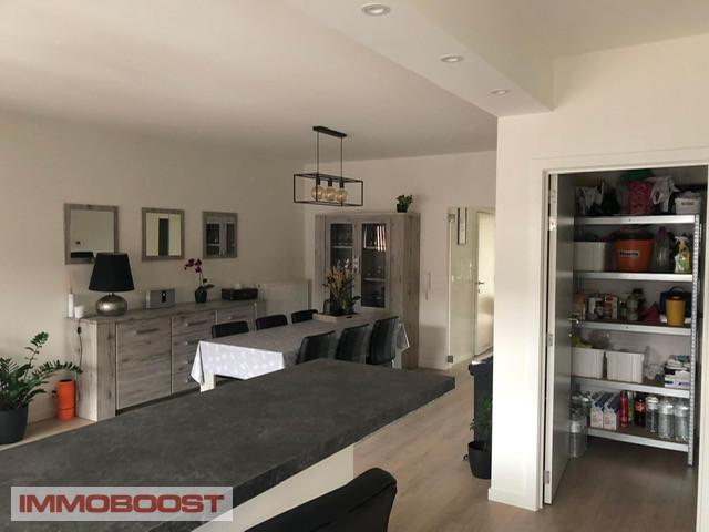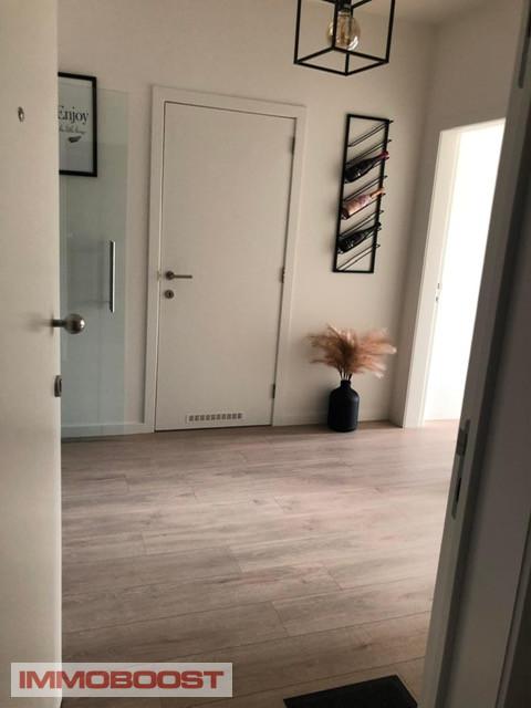 Het omvat een hal (met 2 bergingen), een lichte living, een nieuwe open keuken voorzien van toestellen, een badkamer met inloopdouche, een extra berging naast de keuken, 2 slaapkamers, een terras en een GARAGE.