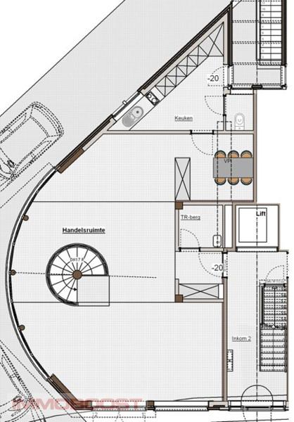 Het HOEKPAND met veel lichtinval heeft een beschikbare ruimte van 180 m2 en bestaat uit een handelsruimte van 95 m2 en een hoge RIANTE kelder van 85 m2.